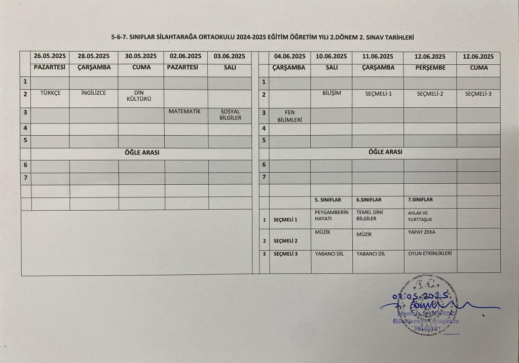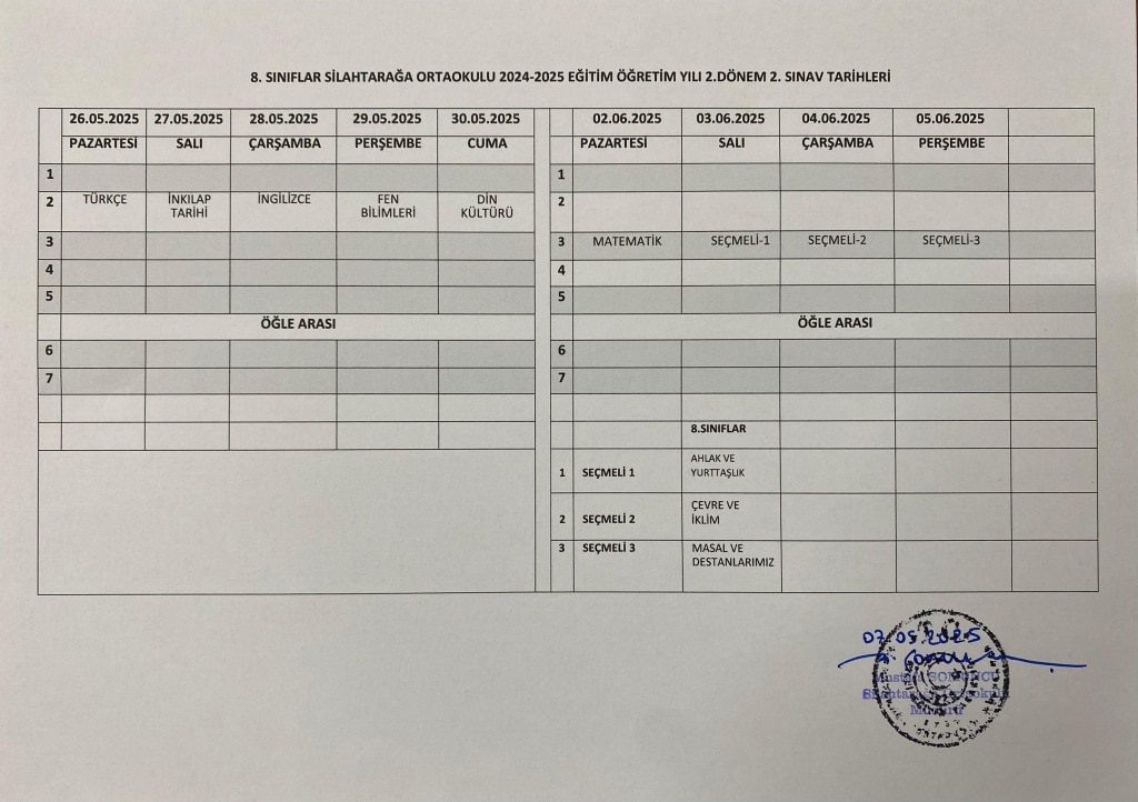 Okulumuz 2024-2025 Egitim öğretim yılı 2.dönem 2.sinav tarihlerimiz...