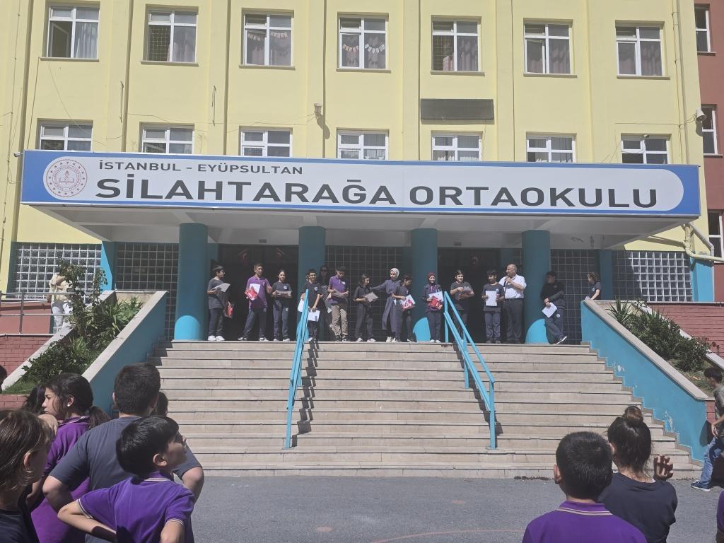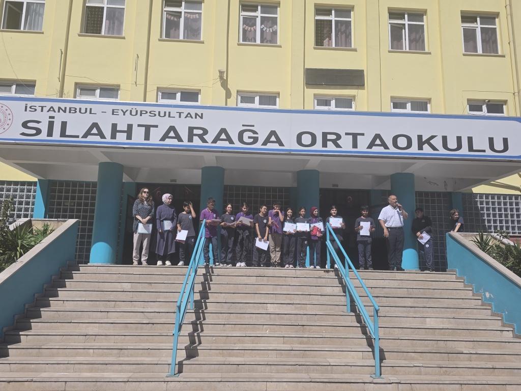 1. İstanbul Valiliği himayelerinde, İstanbul İl Milli Eğitim Müdürlüğü ile Türkiye Dil ve Edebiyat Derneği (TDED) işbirliğiyle yürütülen "Medeniyet Okumaları Projesi"nin -2024/2025 Eğitim Öğretim yılı okuma ve müzakerelere katılımlarından dolayı öğretmen ve öğrencilerimize ödülleri verildi. Tebrik eder, başarılarının devamını dileriz. (ödül verilirken)
