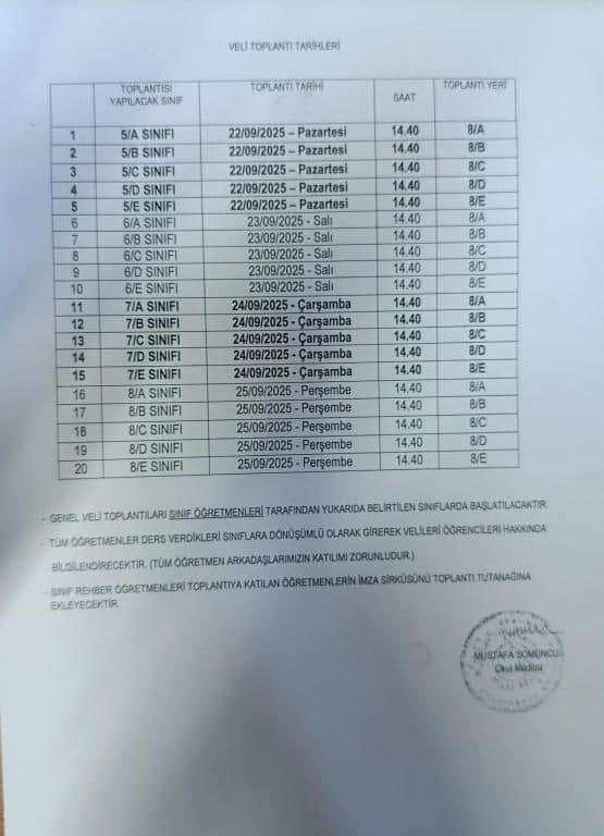 Sayın velilerimiz toplantıya eksiksiz katılımlarınızı bekliyorum